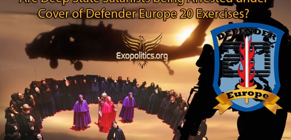 Ενώ μεγάλο μέρος της Ευρώπης έχει «σφραγιστεί» εξαιτίας της πανδημίας του Κορωνοϊού, οι επίλεκτες στρατιωτικές δυνάμεις από τις χώρες του ΝΑΤΟ και τις χώρες-εταίρους χρησιμοποιούν την στρατιωτική άσκηση Defender Europe 20 ως προκάλυμμα για να συλλάβουν κορυφαίους σατανιστές του Βαθέως Κράτους που βρίσκονται οχυρωμένοι σε προστατευμένα κτιριακά συγκροτήματα σύμφωνα με τα λεγόμενα πολύ δημοφιλούς συγγραφέα των New York Times . O David Wilcock λοιπόν διατύπωσε τους εντυπωσιακούς ισχυρισμούς του σε λάιβ μετάδοση στο κανάλι του στο You Tube ενώπιον των 288.000 ακολούθων του, στις 19 Μαρτίου.