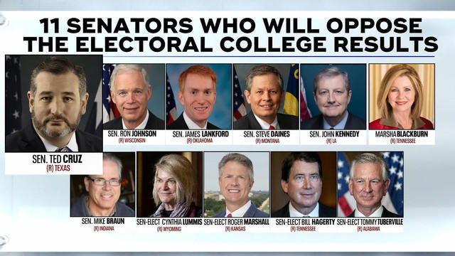 Οι Γερουσιαστές των ΗΠΑ Ted Cruz (Ρεπουμπλικανοί, Τέξας), Ron Johnson (Ρεπουμπλικανοί, Γουισκόνσιν), James Lankford (Ρεπουμπλικανοί, Οκλαχόμα), Steve Daines (Ρεπουμπλικανοί, Μοντάνα), John Kennedy (Ρεπουμπλικανοί, Λουιζιάνα), Marsha Blackburn (Ρεπουμπλικανοί, Τεννεσί), και Mike Braun (Ρεπουμπλικανοί, Ιντιάνα), καθώς και οι εκλεγμένοι Γερουσιαστές Cynthia Lummis (Ρεπουμπλικανοί, Γουαϊόμινγκ), Roger Marshall (Ρεπουμπλικανοί, Κάνσας), Bill Hagerty (Ρεπουμπλικανοί, Τεννεσί), και ο Tommy Tuberville (Ρεπουμπλικανοί, Αλαμπάμα), εξέδωσαν την ακόλουθη δήλωση πριν από τη διαδικασία πιστοποίησης του Εκλεκτορικού Σώματος στις 6 Ιανουαρίου 2021: