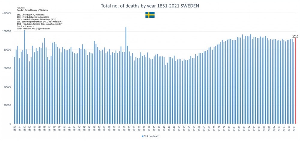 Όπως λένε, όλα θα φανούν στη σύγκριση. Στον πρώτο πίνακα βλέπουμε τον αριθμό όλων των θανάτων στη χώρα από το 1851 έως το 2020:
