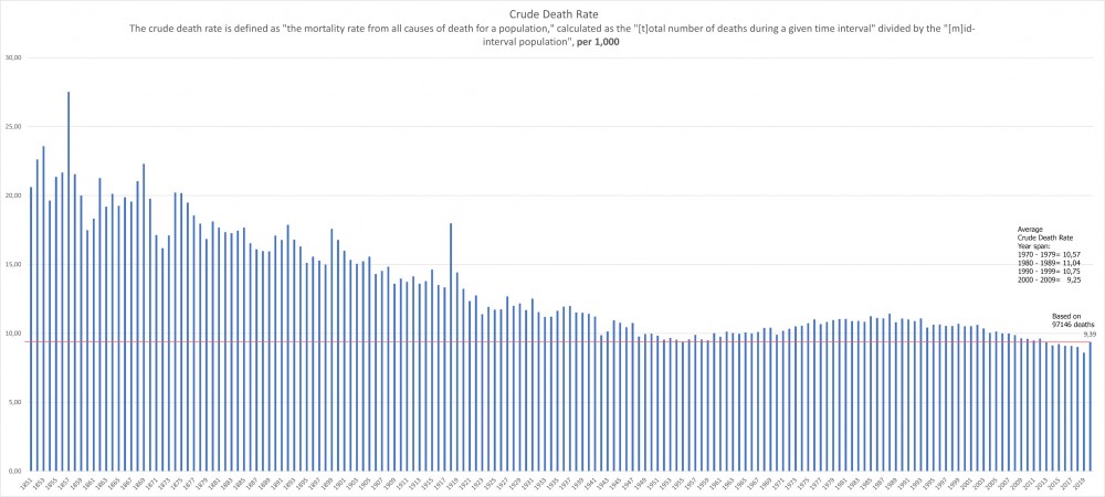 Κάποιος από τους «κοβιντοειδήμονες» μπορεί να μας εξηγήσει γιατί όλα αυτά τα προηγούμενα χρόνια και με υψηλότερη γενική θνησιμότητα, και με υψηλότερη θνησιμότητα ανά 1000 άτομα, και με αντίστοιχα έντονες κορυφώσεις τις τελευταίες δεκαετίες, κανείς ΟΥΤΕ ΚΑΝ πρόσεξε οποιαδήποτε «τρομερή πανδημία» και στις ίδιες χώρες όλα πέρασαν ήπια χωρίς καραντίντες, ιατρικές μάσκες και γάντια, κλειστά σύνορα και πάμπολλες άλλες απαγορεύσεις μέχρι και την απαγόρευση κυκλοφορίας (;)