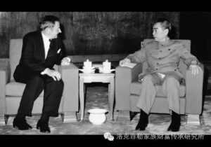 «Πάνω από 100 χρόνια η οικογένεια Ροκφέλερ φέρεται να επένδυσε δισεκατομμύρια δολάρια στην Κίνα, επεκτείνοντας την εστίασή τους από θέματα που σχετίζονται με την ιατρική, όπως η βιολογία, η χημεία και η φυσική, σε μια ευρύτερη εκδοχή μελετών στην αρχαιολογία, τη γενετική, τη γεωργία, την οικονομία κλπ. Η επενδυτική ιστορία της οικογένειας Ροκφέλερ στην Κίνα χρονολογείται από το 1863, όταν ο παππούς του Ντέιβιντ Ροκφέλερ, Τζον Ροκφέλερ ο πρεσβύτερος, πουλούσε κηροζίνη στους Κινέζους. Κατά τη διάρκεια του 20ου αιώνα το ίδρυμα Ροκφέλερ έχει υποστηρίξει αρκετές εκατοντάδες κινεζικά ιδρύματα και πολλές χιλιάδες Κινέζους μελετητές και επαγγελματίες.»