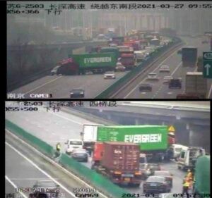 Όπως έχει αναφερθεί ευρέως αλλού, σε μια κεντρική κινεζική εθνική οδό επίσης διακόπηκε η κυκλοφορία από ένα φορτηγό που έφερε το λογότυπο Evergreen.
