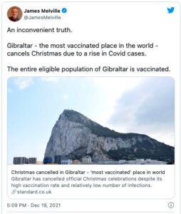 Η Ταϊβάν αναφέρει ότι το 79% των ανθρώπων που έχουν προσβηθεί από COVID-19 έχουν λάβει τουλάχιστον μία δόση του «εμβολίου». Τα Κέντρα Ελέγχου Ασθενειών (CDC) στις Ηνωμένες Πολιτείες έχουν βρει ακριβώς το ίδιο πράγμα. Το 79% των νέων κρουσμάτων COVID-19 εμφανίζονται στους «πλήρως εμβολιασμένους».