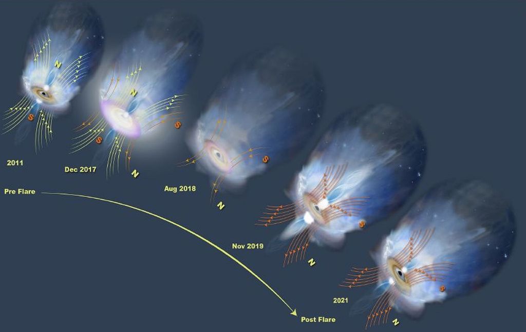 Πρόσφατες επιστημονικές μελέτες δείχνουν ότι αναστροφές του γαλαξιακού μαγνητικού πεδίου είναι ξαφνικά γεγονότα που χρειάζονται μόνο μερικά χρόνια για να συμβούν: