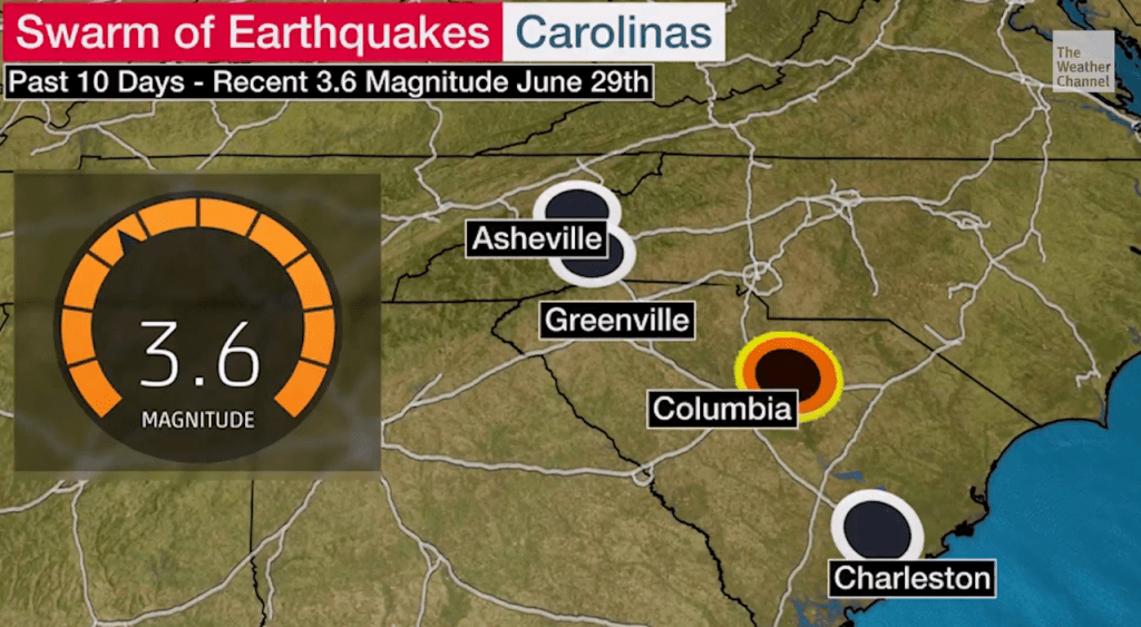 Υπήρξαν επίσης κάποιες σοβαρές ενέργειες από στρατιωτικά Λευκά Καπέλα στην Καρολίνα την περασμένη εβδομάδα. Αυτό εμφανίστηκε στις ειδήσεις ως ένα » μυστηριώδες σμήνος σεισμών» με επίκεντρο τη στρατιωτική βάση Ft. Jackson στην Καρολίνα.