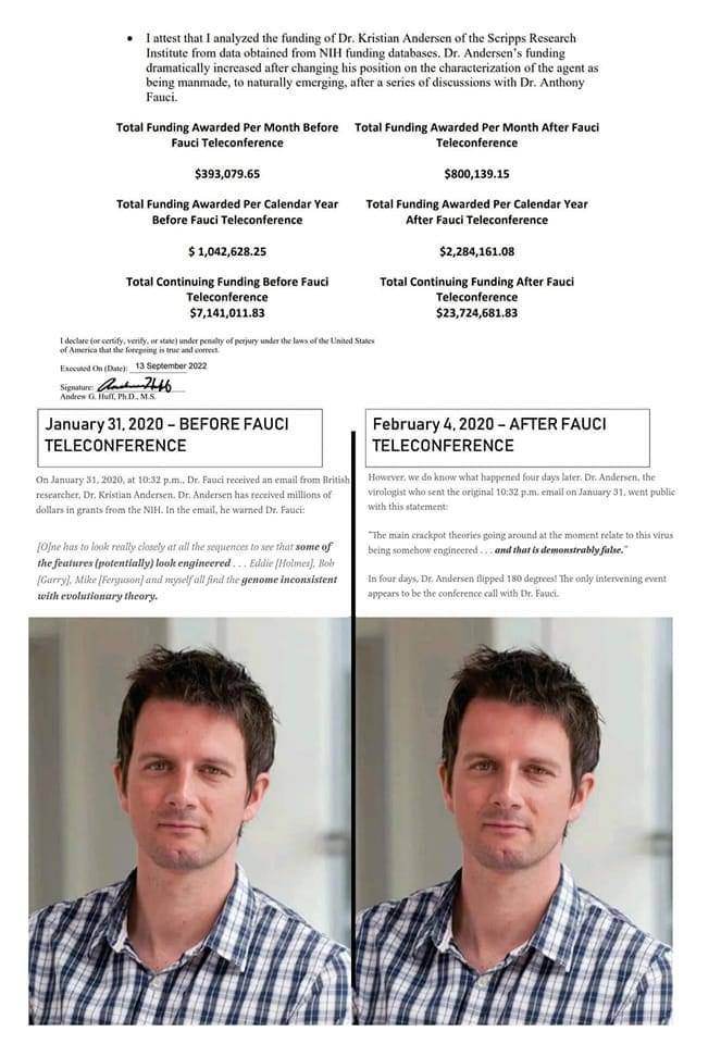 Εδώ είναι ένας Βρετανός επιστήμονας που άλλαξε την δημόσια γνώμη του από τη δήλωση ότι ο Covid φαινόταν εργαστηριακά κατασκευασμένος σε φυσικής προέλευσης, αφού ο Φάουτσι του έδωσε επιχορήγηση 1,88 εκατομμυρίων δολαρίων, και επιπλέον 16,5 εκατ. Η επιστήμη του covid εξαγοράστηκε 100%. Όλοι ήξεραν από την πρώτη μέρα ότι ο covid προερχόταν από εργαστήριο.. και εκατομμύρια δολάρια δαπανήθηκαν για να κάνουν τους επιστήμονες να λένε σκόπιμα ψέματα στο κοινό… αν το κάνουν αυτό με τους επιστήμονες covid, τότε απλά σκεφτείτε πόσα ξοδεύουν για τους επιστήμονες της κλιματικής αλλαγής… Η επιστήμη είναι 100% προς πώληση. Κερδίζει η υψηλότερη τιμή.
