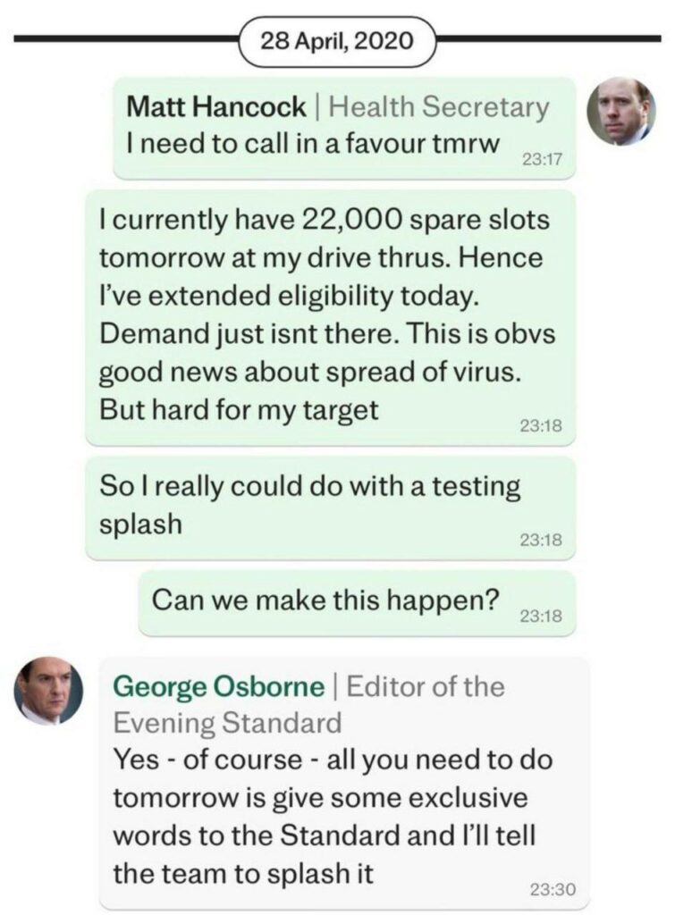 Τώρα ο υπουργός Υγείας του Ηνωμένου Βασιλείου, Ματ Χάνκοκ, πιάστηκε να ζητά από τις εφημερίδες να σπείρουν τον πανικό για να αυξήσουν τεχνητά τον αριθμό των τεστ Covid. Τον Δεκέμβριο του 2020 ρωτάει «Πότε θα αναπτύξουμε τη νέα παραλλαγή;»