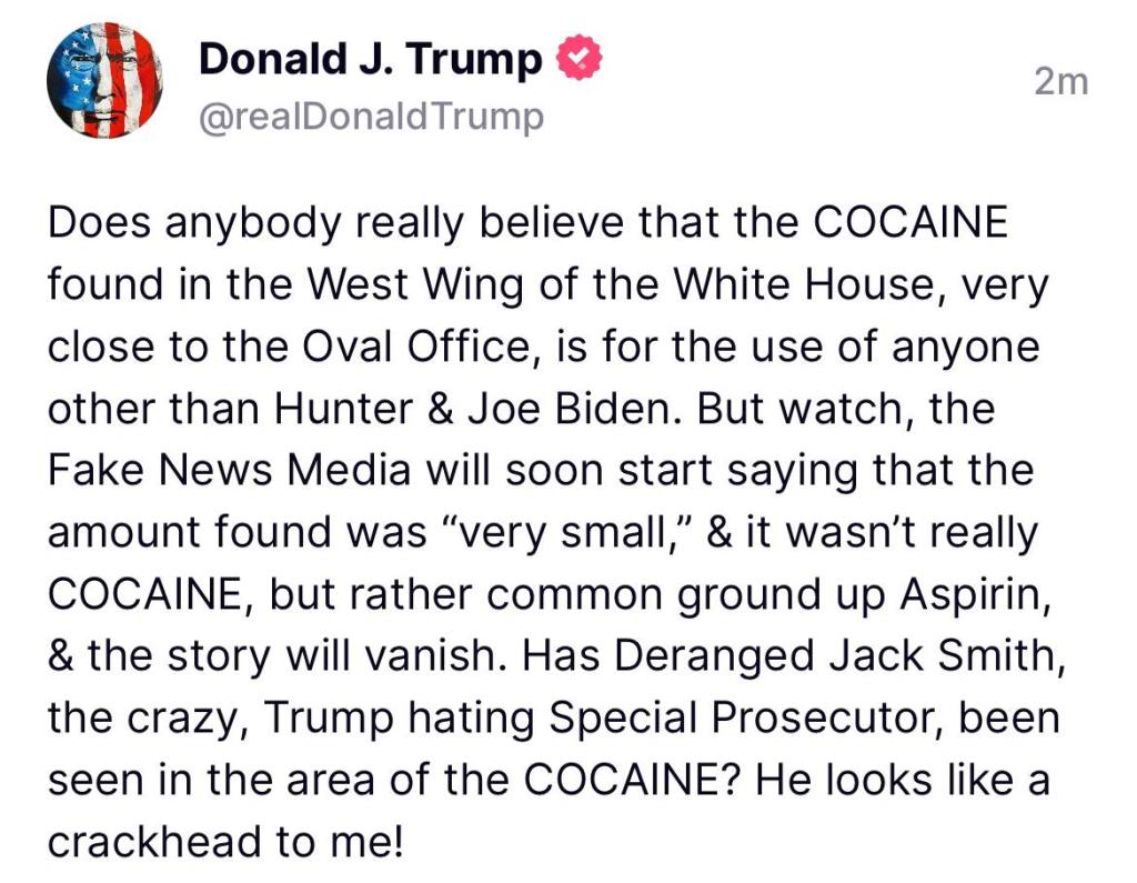 Έχει λοιπόν ενδιαφέρον η πληροφορία ότι βρέθηκε κοκαΐνη στον Λευκό Οίκο περίπου την ίδια εποχή που ο Χάντερ βρισκόταν εκεί. Το γεγονός ότι οι μυστικές υπηρεσίες δεν μπορούσαν να το καλύψουν αυτό, και εμφανίστηκε στα εταιρικά μέσα ενημέρωσης, είναι ένα σημάδι της αποτελεσματικότητας της αντίστασης.