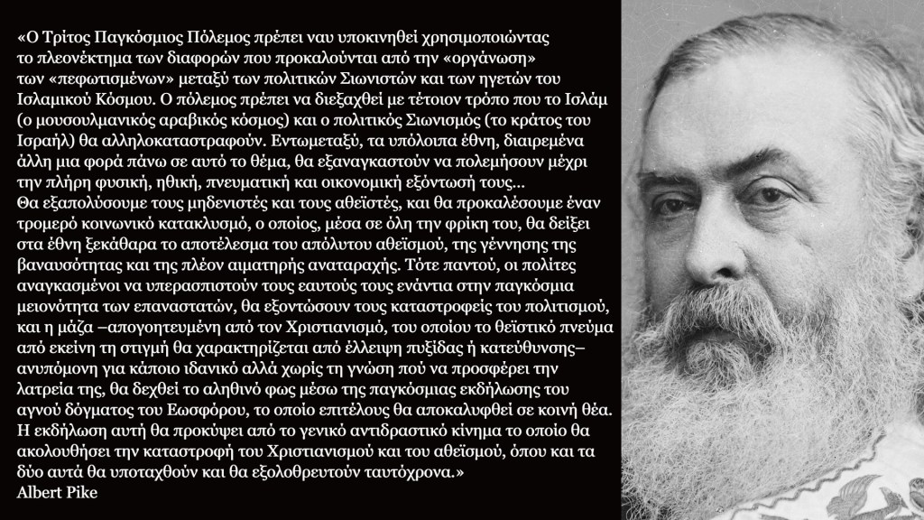 Αυτό που συμβαίνει τώρα στο Ισραήλ, τη Γάζα και αλλού έχει σχεδιαστεί εδώ και τουλάχιστον έναν αιώνα. Ο Ελευθεροτέκτονας Albert Pike ΠΡΙΝ ΑΠΟ ΤΟΝ Α’ ΠΑΓΚΟΣΜΙΟ ΠΟΛΕΜΟ έγραψε: