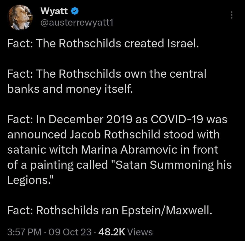 Αντ’ αυτού, οι Εβραίοι πρόκειται τελικά να πάρουν εκδίκηση από τους σατανικούς αφέντες τους. Ο βραβευμένος με Πούλιτζερ βετεράνος Αμερικανός ερευνητής δημοσιογράφος Seymour Hersh, επικαλούμενος έναν ανώνυμο «βετεράνο του μηχανισμού εθνικής ασφάλειας του Ισραήλ με εσωτερική γνώση», λέει: «Ο Νετανιάχου έχει τελειώσει. Είναι ένας ζωντανός νεκρός. Θα παραμείνει στη θέση του μόνο μέχρι να σταματήσουν οι πυροβολισμοί… Ίσως άλλο ένα μήνα ή δύο».