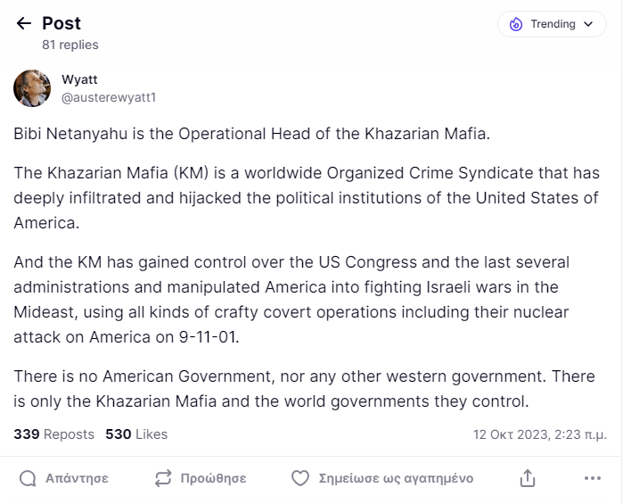 Ο Bibi Netanyahu είναι ο επιχειρησιακός επικεφαλής της χαζαρικής μαφίας.
