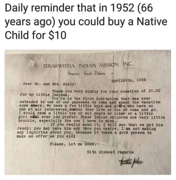 Είναι ζωτικής σημασίας να φτάσουμε στο βάθος αυτού, επειδή οι στατιστικές του FBI δείχνουν ότι αυτοί οι άνθρωποι βασανίζουν κάθε χρόνο μέχρι θανάτου τουλάχιστον 40.000 παιδιά στις ΗΠΑ, πόσο μάλλον εκείνα που εισάγονται λαθραία από το εξωτερικό. Όπως δείχνει αυτή η επιστολή που προσφέρει παιδιά ιθαγενών Αμερικανών προς πώληση για 10 δολάρια το καθένα το 1953, αυτό δεν είναι νέο.
