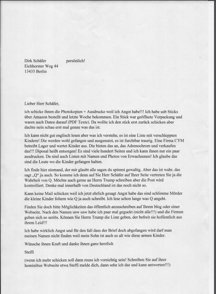 Αν αυτό δεν κάνει το αίμα σου να βράσει, δεν ξέρω τι θα το κάνει. Ένας υψηλόβαθμος κυβερνητικός αξιωματούχος (αυτό το άτομο ήταν μόνο του στο δωμάτιο με τους προέδρους των ΗΠΑ και τους πρωθυπουργούς του Ισραήλ) μας έδωσε πολύ λεπτομερείς και αξιοποιήσιμες πληροφορίες σχετικά με τις εγκαταστάσεις βασανιστηρίων παιδιών που βρίσκονται στις ΗΠΑ, το Ηνωμένο Βασίλειο και αλλού. Περιλαμβάνει τα ονόματα και τις διευθύνσεις των βασανιστών, τα ονόματα των βασανισμένων παιδιών και την ακριβή τοποθεσία των κέντρων βασανιστηρίων.