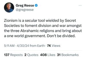 «Το άβαταρ του Σιωνιστή Νετανιάχου, ο οποίος δεν είναι εβραϊκής καταγωγής, αλλά σιωνιστής Χαζάρος, τραγουδά το αγαπημένο τους τραγούδι…του αντισημιτισμού.