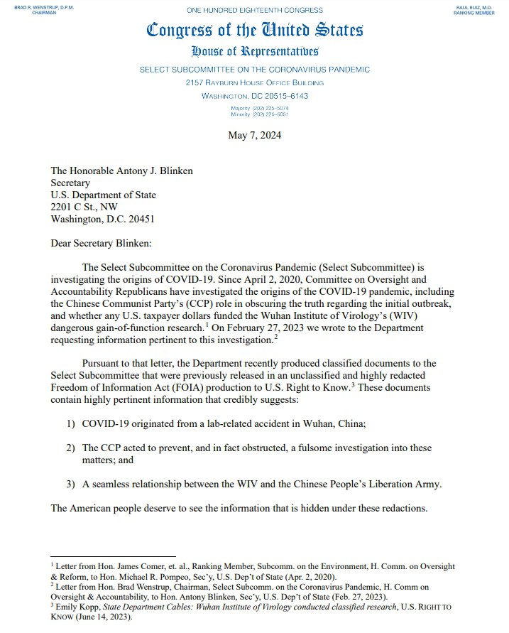 «Οι παρακάτω επιστολές από το Κογκρέσο αποτελούν μέρος μιας προσπάθειας της ΧM να κατηγορήσει την Κίνα για τον Covid. Γνωρίζουμε ότι προήλθε αρχικά από την Ουκρανία και στη συνέχεια πιθανώς στάλθηκε στη Γουχάν και, ίσως, «διέρρευσε» από εκεί. Όλη αυτή η απάτη ήταν ένα σχέδιο της ΧΜ που οργανώθηκε πριν από δεκαετίες. Αυτή είναι η συνέχεια της παράστασης του τσίρκου για το ανθρωποκόπαδο. Το κοινό γίνεται όλο και μικρότερο, καθώς «ξυπνάει» και αντιλαμβάνεται την πραγματικότητα», λέει ένας γιατρός της CIA.
