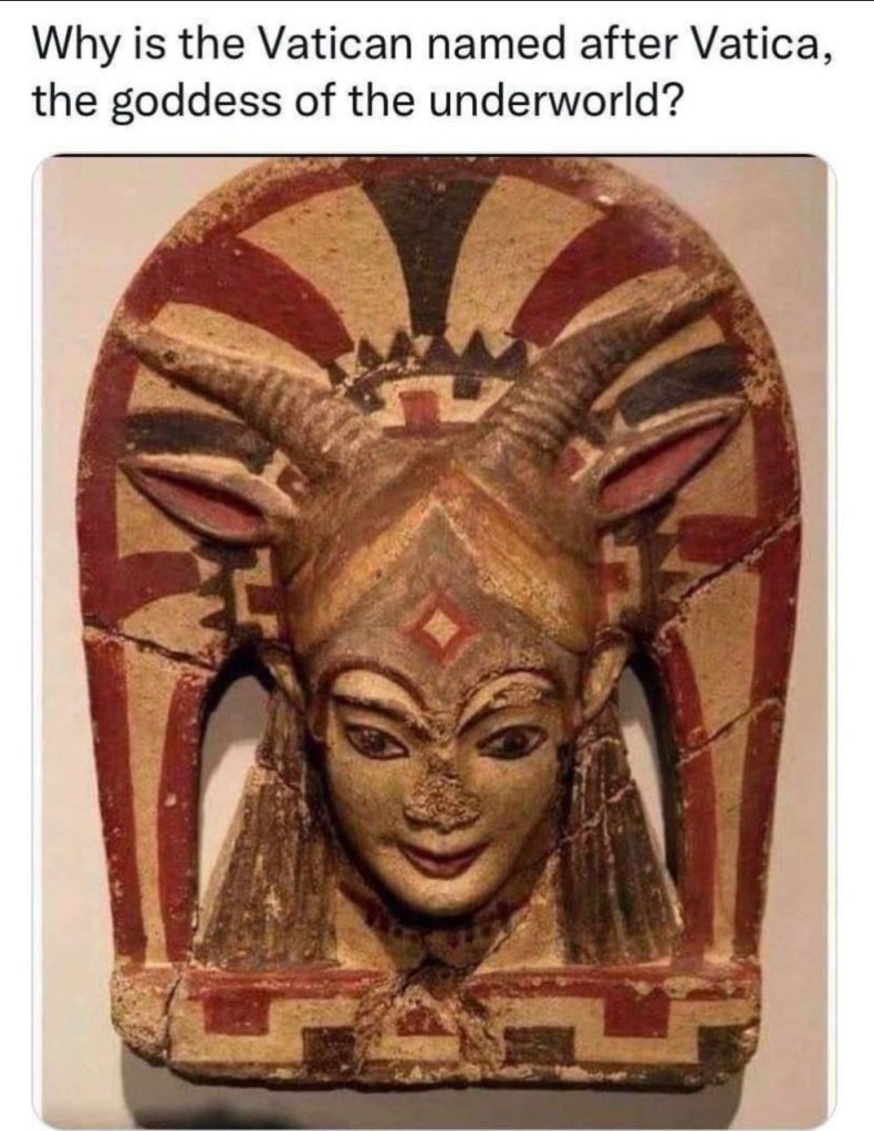 Τώρα, ας ρωτήσουμε γιατί το Βατικανό πήρε το όνομά του από τη Vatica, τη θεά του Κάτω Κόσμου;