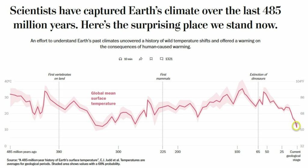Αυτή τη στιγμή η γη είναι ψυχρότερη από τον ιστορικό μέσο όρο, πράγμα που σημαίνει λιγότερη ζωή στην επιφάνεια του πλανήτη και επομένως περισσότερο άνθρακα στην ατμόσφαιρα.