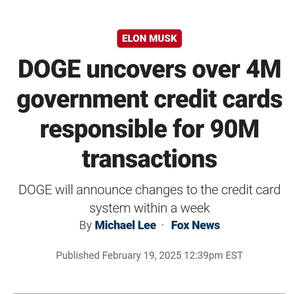 Το DOGE αποκαλύπτει πάνω από 4 εκατομμύρια κυβερνητικές πιστωτικές κάρτες υπεύθυνες για 90 εκατομμύρια συναλλαγές.