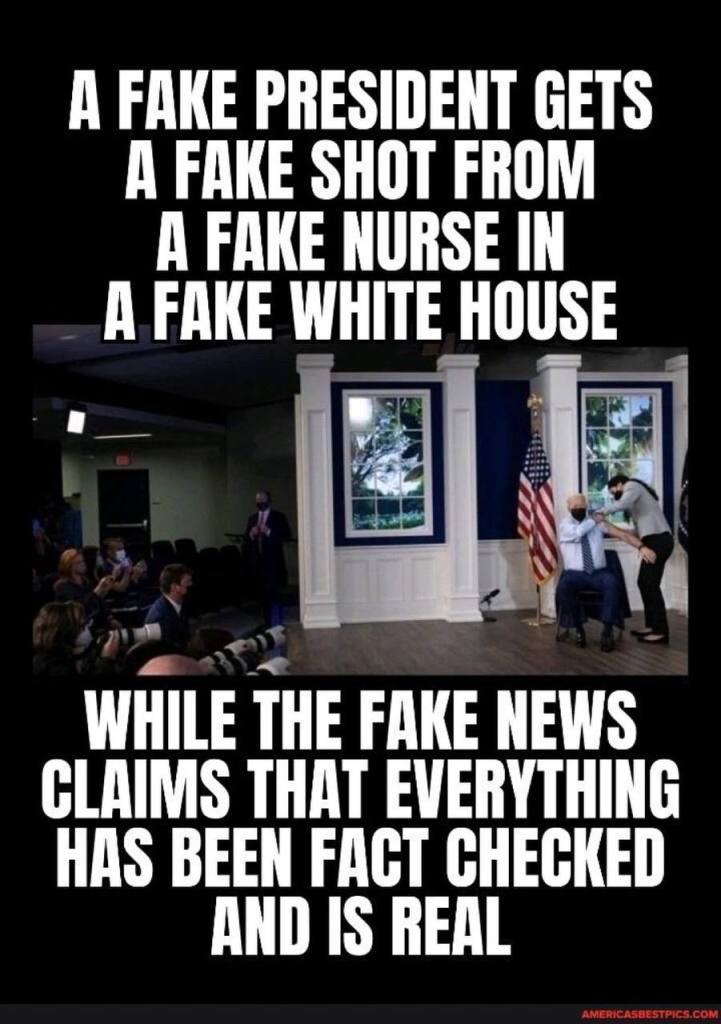 Ως παράδειγμα, μπορείτε να δείτε έναν ψεύτικο πρόεδρο να λαμβάνει ένα ψεύτικο εμβόλιο σε έναν ψεύτικο λευκό οίκο που ο Τύπος ανέφερε ως πραγματικό.