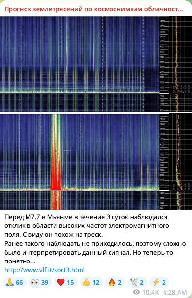 Στην Ανατολική Ασία, εν τω μεταξύ, η Μιανμάρ χτυπήθηκε με ένα κατευθυνόμενο ενεργειακό όπλο. Μια πηγή της Διαστημικής Δύναμης των ΗΠΑ λέει: «Μια πολύ μεγάλη DUMB (*Βαθιά Υπόγεια Στρατιωτική Βάση) καταστράφηκε στο Mandalay. Ήταν η βασική που συνδεόταν με την Ταϊλάνδη, το Λάος και το Γιουνάν της Κίνας μέσω ενός συστήματος σηράγγων».