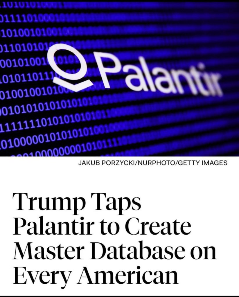 «Η κυβέρνηση Τραμπ συλλέγει δεδομένα για όλους τους Αμερικανούς και προσλαμβάνει την εταιρεία ανάλυσης δεδομένων Palantir για να το κάνει».