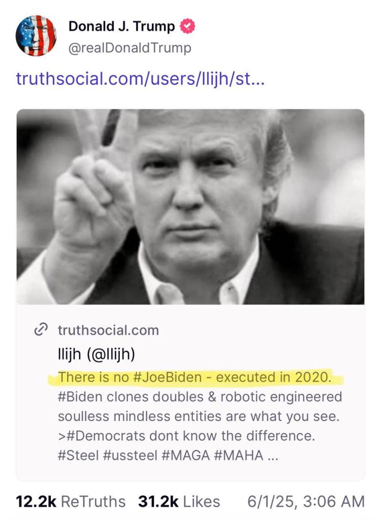 Ακολουθεί ένα παράδειγμα του πώς οι ΗΠΑ έχασαν την εξουσία. Ο ψεύτικος Τραμπ μόλις δημοσίευσε ότι: