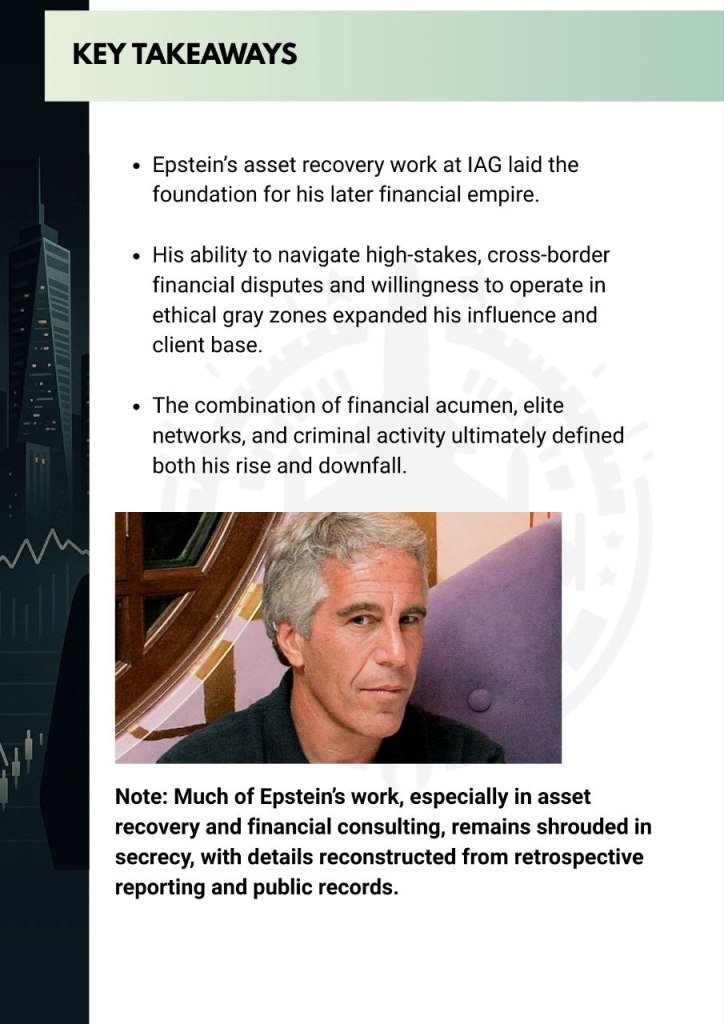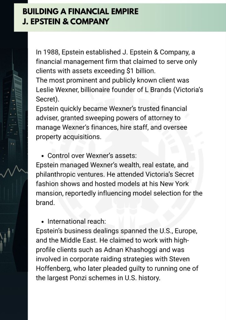Από μια ξαφνική έξοδο από τη Γουόλ Στριτ μέχρι την οικοδόμηση μιας σκιώδους οικονομικής αυτοκρατορίας, το ταξίδι του Τζέφρι Έπσταϊν αποτελεί μια μελέτη περίπτωσης για τη φιλοδοξία, τη μυστικότητα και τη δύναμη των δικτύων της ελίτ.