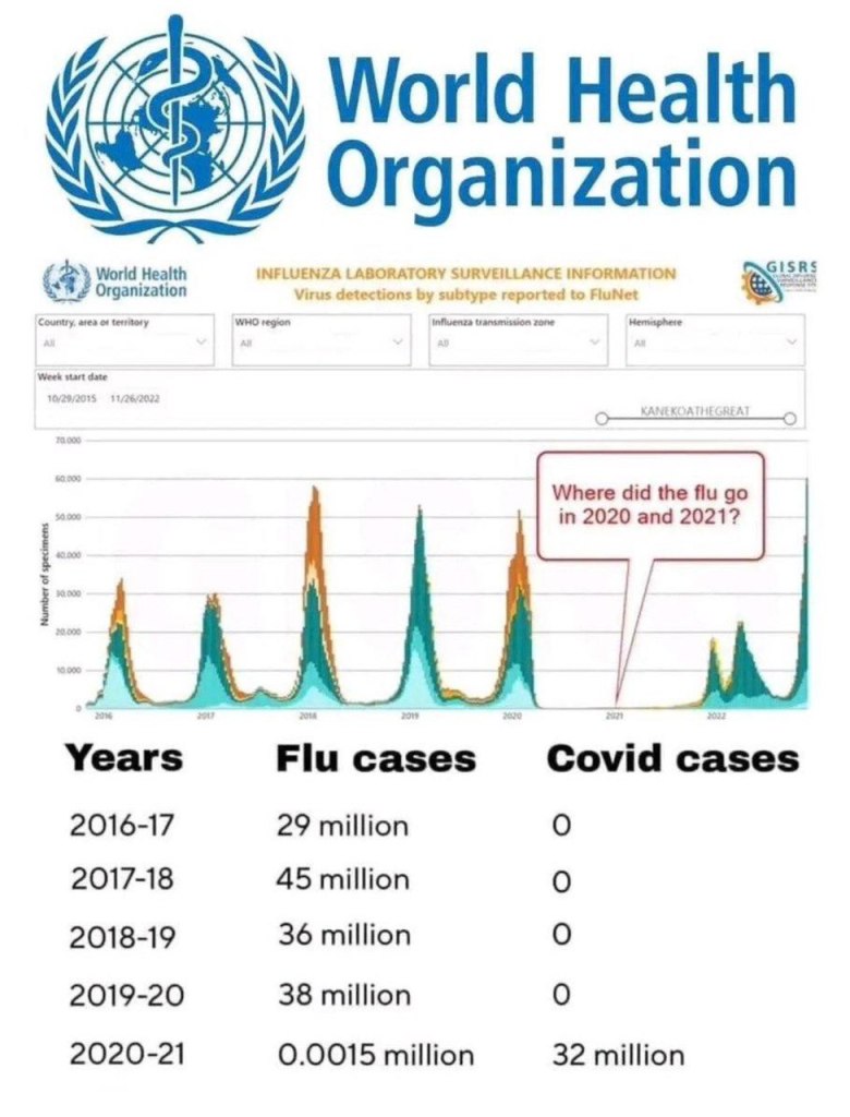 Ήταν επίσης επί Μπους του νεότερου που ξεκίνησαν σοβαρά οι επιθέσεις εναντίον των λαών του κόσμου με βιολογικά όπλα. Αυτό σημαίνει ότι οι αναγνώστες μπορούν επίσης να βοηθήσουν επιμένοντας στην αλήθεια για τη μαζική δολοφονία λόγω COVID-19 και εμβολίων. Υπενθυμίζουμε ότι όλα αυτά ήταν μια φάρσα. Ρίξτε μια ματιά σε αυτό το διάγραμμα για να δείτε πώς η γρίπη μετονομάστηκε σε COVID προκειμένου να αναγκαστούν οι άνθρωποι να κάνουν τοξικά εμβόλια.