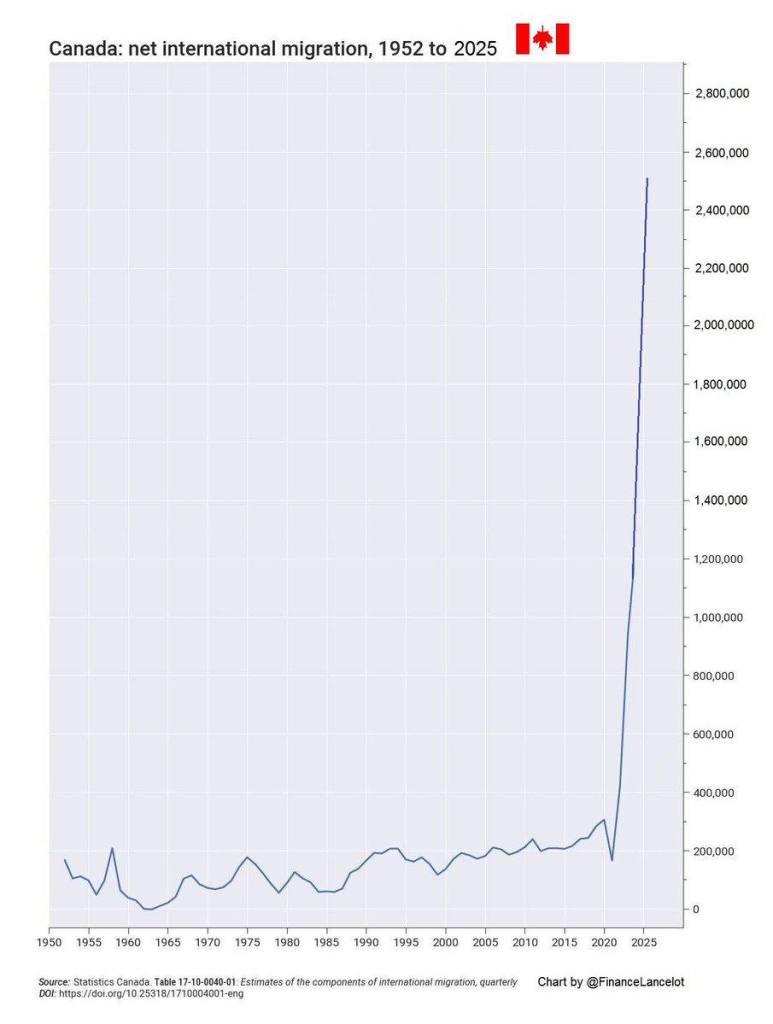 Τα στοιχεία για την καθαρή μετανάστευση στον Καναδά είναι δημοσιευμένα και οι αριθμοί είναι συγκλονιστικοί, όπως δείχνει αυτό το διάγραμμα.
