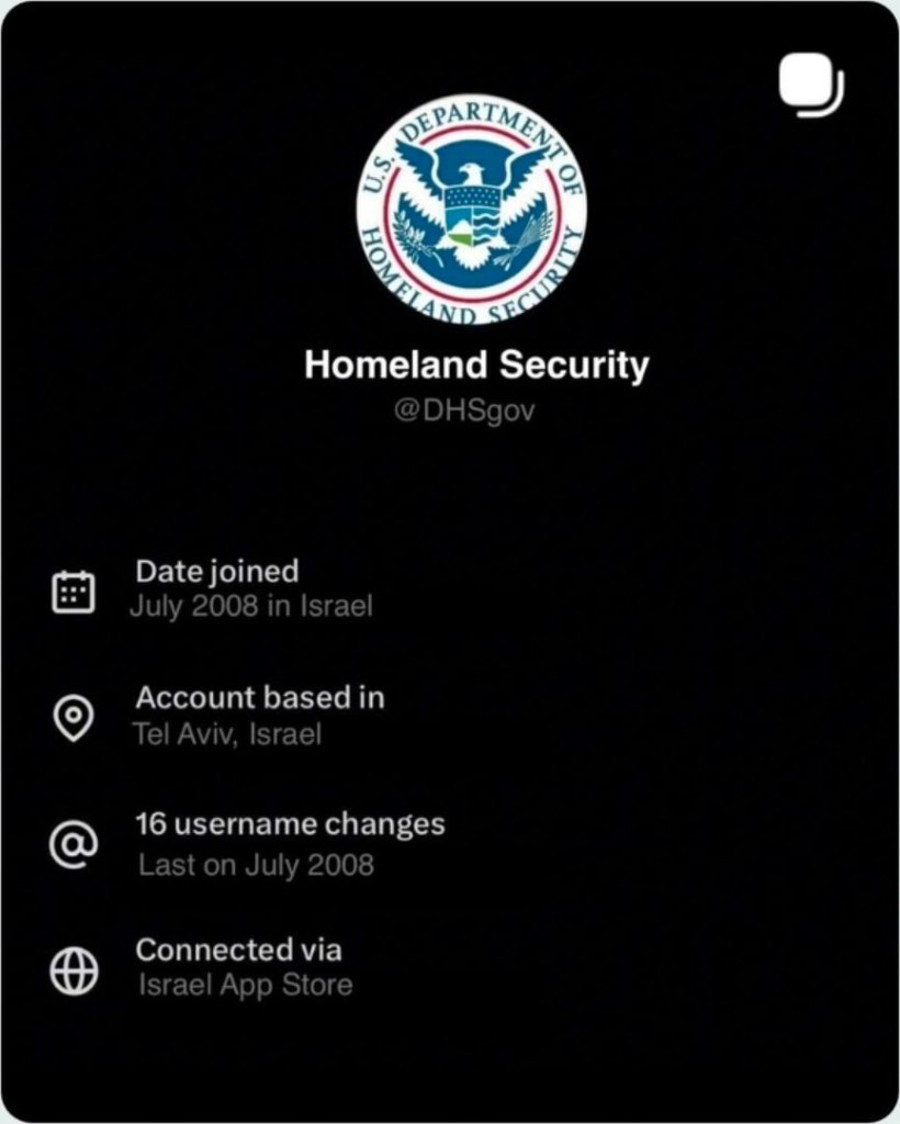 Στις ΗΠΑ, το λεγόμενο Υπουργείο Εσωτερικής Ασφάλειας αποτελεί μια τέτοια απόδειξη . Ιδρύθηκε στο Ισραήλ και εκεί βρίσκονται τα κεντρικά του γραφεία, όπως μπορείτε να δείτε από την γεωγραφική τους ετικέτα.