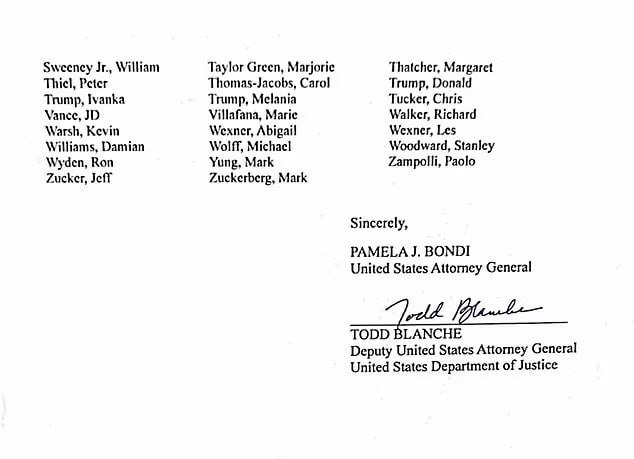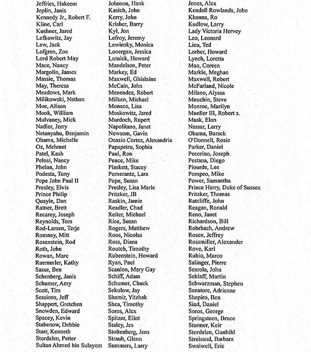 Ακολουθεί μια λίστα με ονόματα ατόμων που συνδέονται με τον Έπσταϊν, την οποία δημοσίευσε το Υπουργείο Δικαιοσύνης των ΗΠΑ.